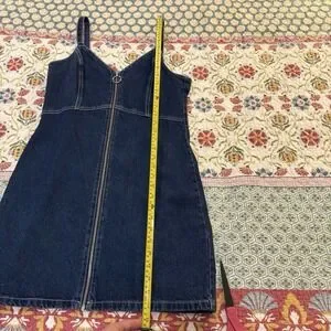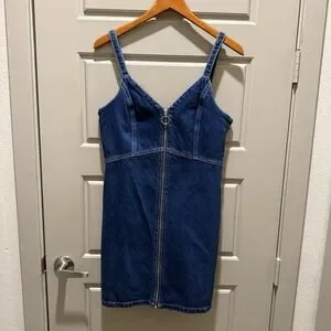 TOPSHOP MOTO Zip Front Denim Dress in Indigo Size 8 Bodycon Mini V-Neck EUC