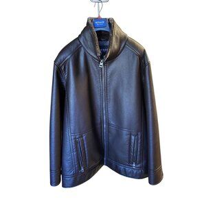 A sophisticated and durable brown faux leather jacket designed for colder weather. Features heavyweight construction, full zip closure, and modern style.