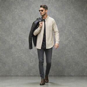 Elevate your style with this classic cream checkered shirt. Perfect for any occasion, it offers a timeless look and comfortable fit.