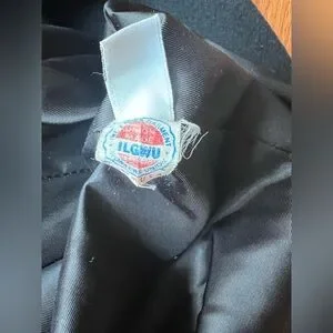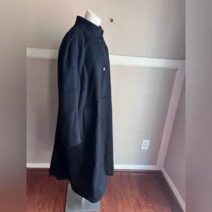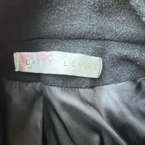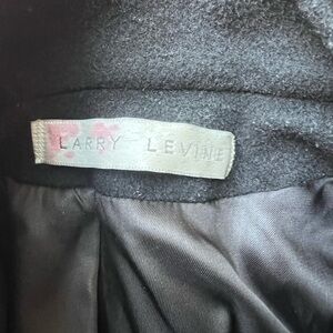 Sleek black trench coat by Larry Levine. Timeless design with button closure. Ideal for stylish layering.