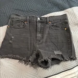 Elevate your casual style with these high waist distressed gray denim shorts. Perfect for any laid-back outing.