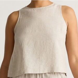 Quince 100% European Linen Sleeveless Tank Top in a light tan Medium