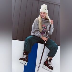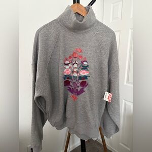 NWT FREE PEOPLE MOVEMENT On Your Mark Logo Mock Neck Pullover | Grey MSRP $148 S