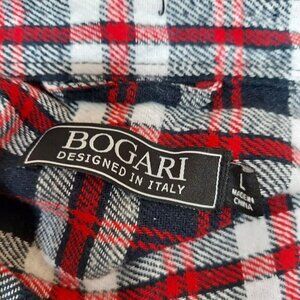 Bogari Mens Large Red Plaid Pocket Long Sleeve Button Flannel Made in Italy