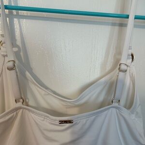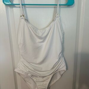 Chic white swimsuit by Anne Cole. Features a sleek design. Ideal for summer wear. It says size 12, but it fits more like a medium at most.