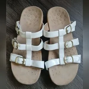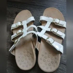 Vionic White Patent Leather Misa slide sandals adjustable straps Size 8