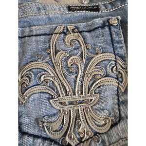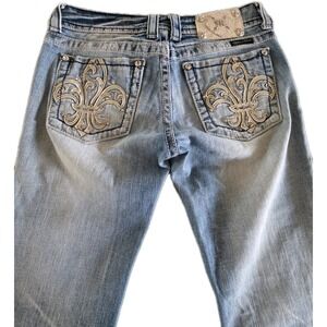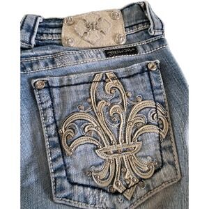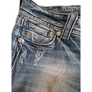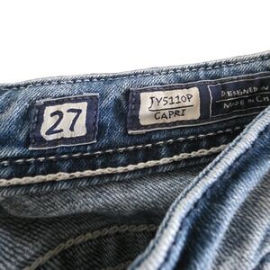 Miss Me Capri Jeans Women's 27 Blue Stretch Denim Distressed Leather Inserts