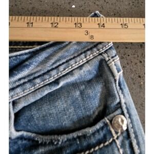 The Miss Me Capri Jeans for women in size 27 are a stylish and versatile addition to any wardrobe. Made from stretch denim fabric with a low rise and a 22-inch inseam, these jeans feature a distressed blue color with embroidered accents for added flair. The 5-pocket design and zip/button closure provide both functionality and comfort, making them ideal for casual wear during the summer, fall, and spring seasons. The Capri style adds a trendy touch, perfect for those looking for a blend of rock, cowgirl, and city-inspired themes in their clothing.