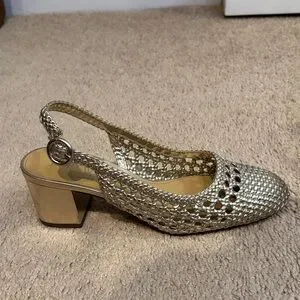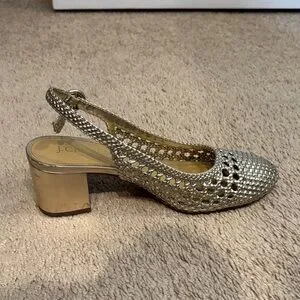 J. Crew Elegant Gold Woven Women's Heeled Shoes Size 7 with Buckles