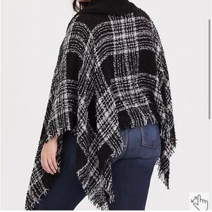 Torrid Southwestern Plaid Boho Fringe Cowl Turtleneck Poncho Sweater