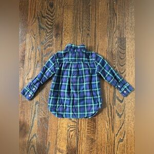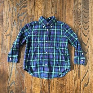 Ralph Lauren Boys 2/2T Navy Blue/Red/Green Plaid 100% Cotton Button-Down Shirt