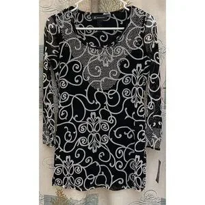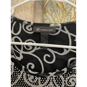 I.N.C Blush Garden Rhinestone Black White Business Macys Pullover Business Sm