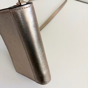 Chic metallic crossbody by Kate Spade. Features a sleek design with a chain strap.