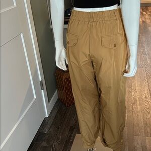 Summum Nylon-Style Cargo Pants – Size Medium – NWT Summum is a Premium European Brand. Elevate your everyday style with these effortlessly chic Summum cargo pants, brand new with tags. Designed with a modern, relaxed silhouette, these pants feature a lightweight 100% polyester fabric that has the look and feel of classic parachute pants—smooth, airy, and comfortable. The flattering high-rise fit is complemented by an elasticized back waistband for added comfort, while the front button and zip closure keeps the look tailored. Functional details include side pockets and zippered leg cargo pockets, giving these pants a stylish utility edge. The adjustable ankle straps feature dual button closures, allowing you to customize the fit—wear them cinched for a jogger-style silhouette or undone for a looser, straight-leg look. Perfect for casual wear or styled up for a street-chic outfit. Details: • Brand: Summum • Size: Medium (38) • Condition: New with tags • Fabric: 100% Polyester (lightweight, parachute-style feel) • Waist: 15” flat lay • Rise: 11” • Inseam: approx. 28” Features: • Elasticized back waistband • Button & zip front closure • Side pockets • Zippered cargo leg pockets • Adjustable ankle straps with 2-button closure A versatile, on-trend piece that blends comfort with elevated utility style. Can be worn lower on hips for an oversized fit on a smaller frame.