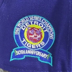 New Era 59FIFTY Detroit Tigers 1968 World Series Fitted Hat in cobalt blue – retro championship cap for Tigers fans.
