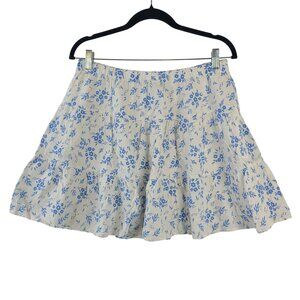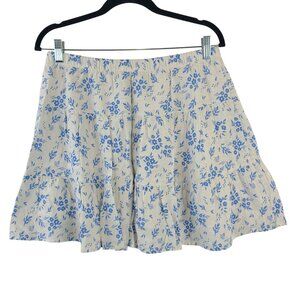 NEW Sincerely Jules Blue Floral Tiered Mini Skirt Rayon-Linen Blend Womens Sz L