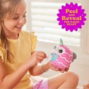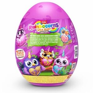 Each Wild Heart Surprise egg hatches with over 10 surprises inside, including a cuddly Rainbocorn plush, long-tailed Boo-Boocorns, colorful stickers, Rainbocorn poop slime, and more!