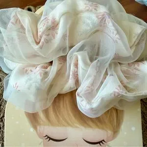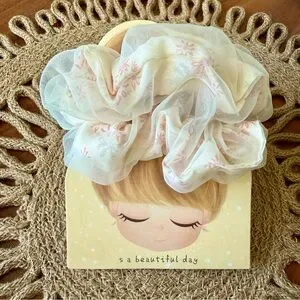 Elegant sheer hair scrunchie with floral design. Perfect for adding a touch of style. COMES WITH TWO SCRUNCHIES
