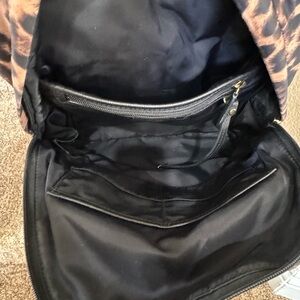 Zipper Pulls: The backpack leather zipper pulls show minor cosmetic wear but remain fully functional. This is a common point of use and can be easily repaired or replaced with universal gold-tone pulls if desired. Please see photos.