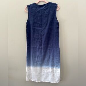 Paraphrase Blue Ombré Linen S/M Column Lightweight Sleeveless Midi Dress