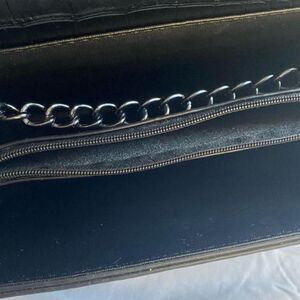 This sophisticated black shoulder bag features a luxurious crocodile-embossed design. Perfect for any occasion, it combines style and functionality with its sleek chain strap.