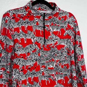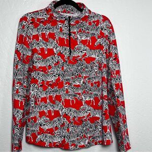 IBKUL Women's Quarter Zip Novelty Zebra Print Long Sleeve Large Pickleball Golf