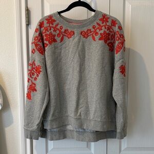 Boden Gray Sweatshirt with Orange Floral Embroidery