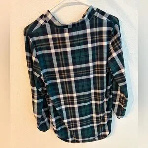 Maternity blouse with 3/4 sleeves and ruching detail on sides and sleeves. Perfect for casual outings. Comfortable and stylish.