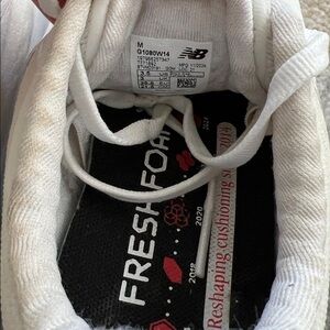 Comfortable New Balance sneakers. White exterior with black interior accents. Ideal for everyday wear.