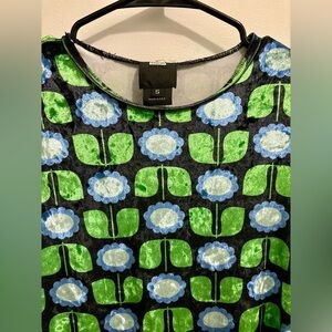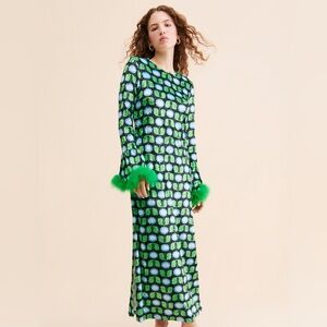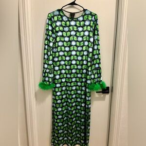 Anna Sui Velvet Daisies Long Sleeve Velvet Maxi Dress with Bell Sleeves