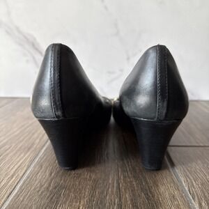 tory burch wedge pumps womens black leather gold logo cap toe heels work office career shoes