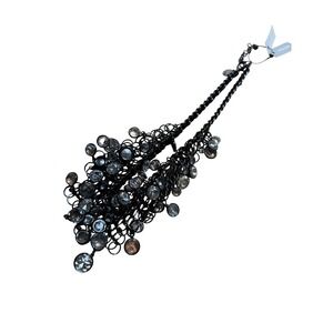 Statement-making bib necklace features a dramatic cascading design of clear faceted crystals set in gunmetal-tone hardware. The intricate chain link construction creates a bold, tiered silhouette that catches the light beautifully, while the dark metallic finish adds an edgy, modern touch to the glamorous sparkle. This versatile piece is perfect for elevating a simple cocktail dress, adding flair to a formal gala ensemble, or bringing a touch of luxury to a holiday party outfit.