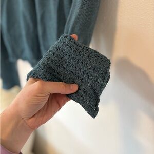 Chic teal sweater with ruffle lace neckline. Ideal for stylish layering. Size M.
