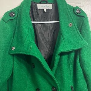Sebby Emerald Green Pea Coat with Black Leather Accents XL