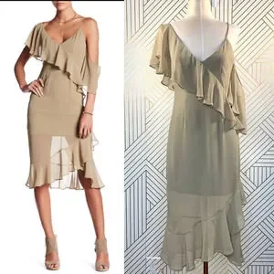Keepsake the Label Cosmic Girl Ruffle Dress in Willow Tan Beige Green Size Small