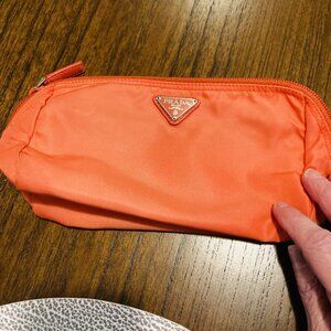 Elevate your collection with this authentic Prada coral nylon makeup bag! 🌸