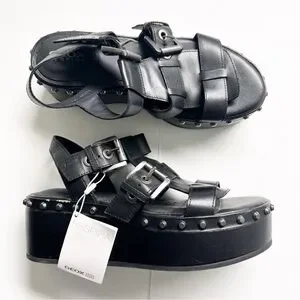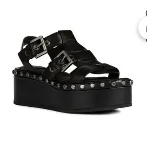 GEOX Shakima Platform Sandal In Black Retro Grunge New Womens Shoes