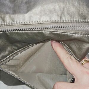 This is a very nice Kipling Crossbody bag in a beautiful pewter metallic. It is very roomy for its size. See the pictures as they are part of the description. It is an excellent condition from a smoke free environment.