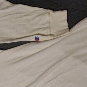 Champion White Long Sleeve Tee with Blue and Red Logo