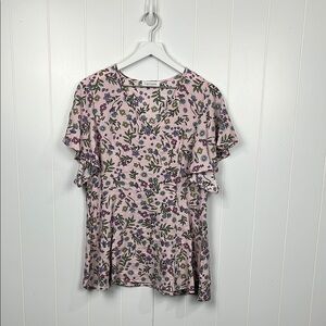 First Love Womens Top S Lilac Blue Floral Print Flutter Sleeves Pullover Pretty