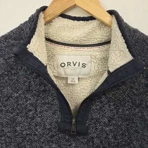 Orvis Classic Collection Sherpa Lined 1/4 Zip Sweater Fleece Mens L Logo Patch