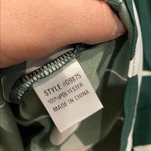 Chic blouse with bold dark green circles. Perfect for casual wear. Lightweight and stylish. NWT. Vneck. Polyester, dressy feel material.