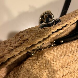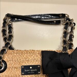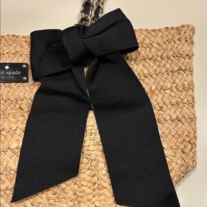Kate Spade Natural Woven Tote with Black Bow