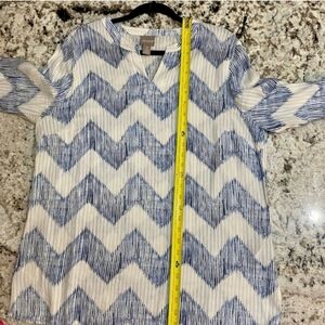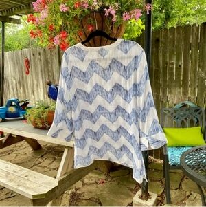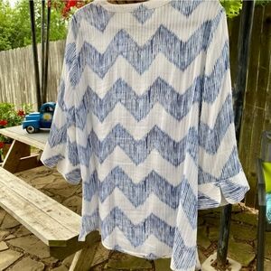 Chicos Womens 3/4 Sleeve Top with Blue and White Chevron Design