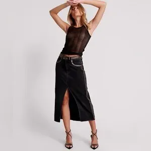 One Teaspoon BLACK OAK STUDDED ROCKO LONG LENGTH DENIM SKIRT/ size 27