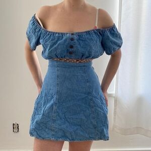 Vintage Denim Milkmaid Off The Shoulder Dress