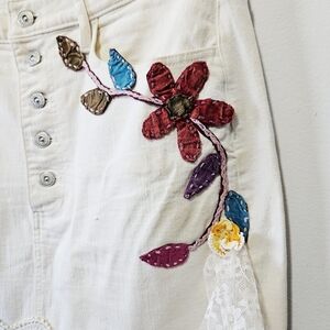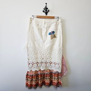 vintage boho patchwork denim skirt, cottagecore lace midi skirt, prairiecore embroidered jean skirt, upcycled bohemian maxi skirt, whimsical butterfly applique skirt, shabby chic crochet lace skirt, lagenlook layered denim skirt, eclectic artsy boho skirt, romantic farmhouse aesthetic skirt, fairycore embroidered midi skirt, textured mixed media skirt, rustic western boho skirt, handmade style applique denim skirt, festival ready statement skirt, magnolia pearl inspired, cottage witch aesthetic skirt, romantic victorian inspired denim skirt, modest boho layering skirt, vintage inspired prairie skirt, heirloom lace panel skirt, unique artisan denim midi skirt