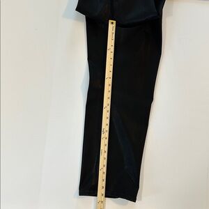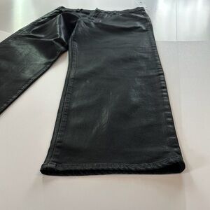 Stylish and versatile black, cropped, slim-straight leg jeans. Perfect for going out or any special occasion. The coated finish gives a look similar to leather; shimmery sheen.