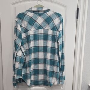 Zenana Teal and White Plaid Button-Up Shirt
