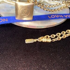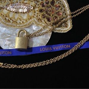 Stylish gold padlock pendant. Features Louis Vuitton branding. Very Rare 200 Series, #201, unfortunate i dont have the key but these LV Locks have been progressively turning heads when styled on a chain & worn as a Pendant/Lock Charm! There’s a market for the 200 series right now whether you are a reseller or a person who wants a Luxury Item that can give you a lot of Spark to ALL of your outfits!! This won’t last too long so if you leave & are Still thinking about it, you definitely want it!!!!